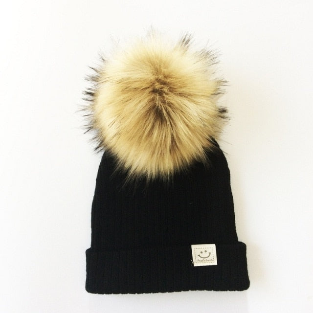 Pompom knitted hat. It is a very cute and Korean style cap. It helps to keep your baby's head warm and save it from the bad weather.